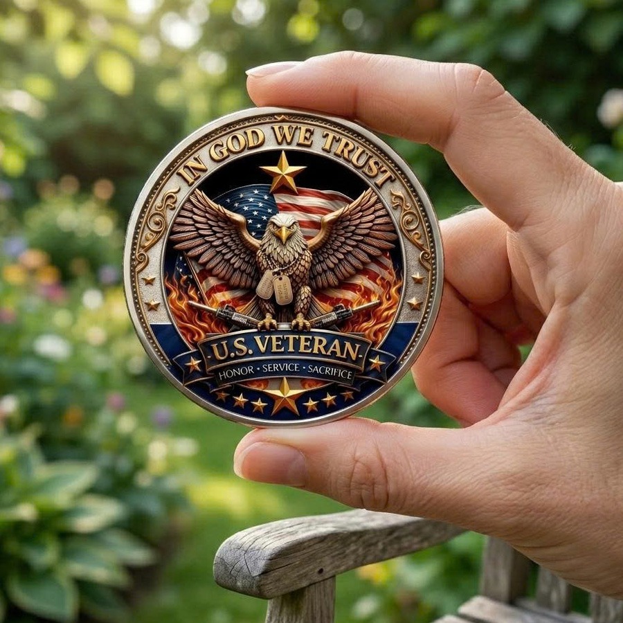 A powerful tribute coin designed to honor the courage, service, and sacrifice of U.S. Veterans, reminding every generation of the brave men and women who defended American freedom and protected our nationâs values.